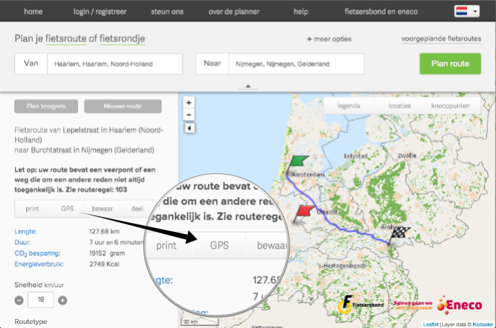 Heb je een GPS-ontvanger en wil je hiermee een geplande route gaan fietsen? Met de Fietsersbond Routeplanner kun je een fietsroute opslaan als GPS-bestand en vervolgens op je GPS-ontvanger zetten.